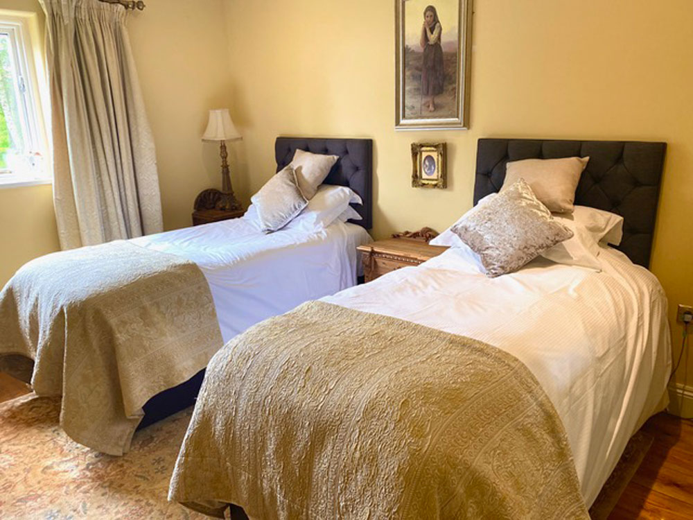This is our twin bedded room located on the ground floor. The link twin beds can also be joined together to make a huge super king sized bed. This room has wheelchair accessibility and grab rails in the bathroom