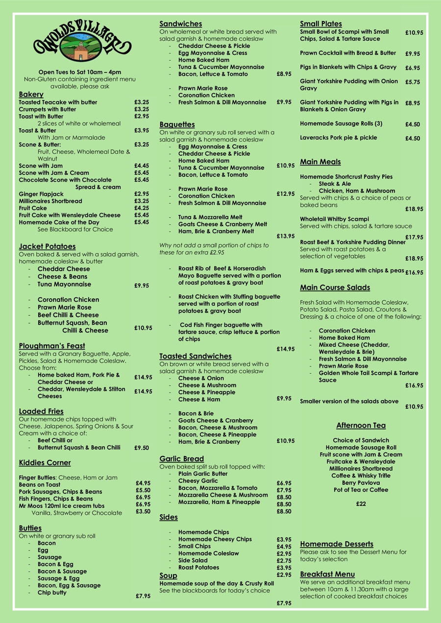 From homemade scones, cakes and Afternoon Teas to soups, sandwiches, toasties and much more.